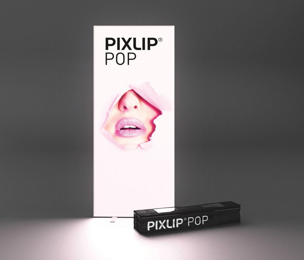 Pixlip POP is the first mobile backlit alternative to the classic roll-up and conventional banner display. The efficient integrated LED backlighting grabs the attention making it ideal for POS across exhibitions, events and much more.
