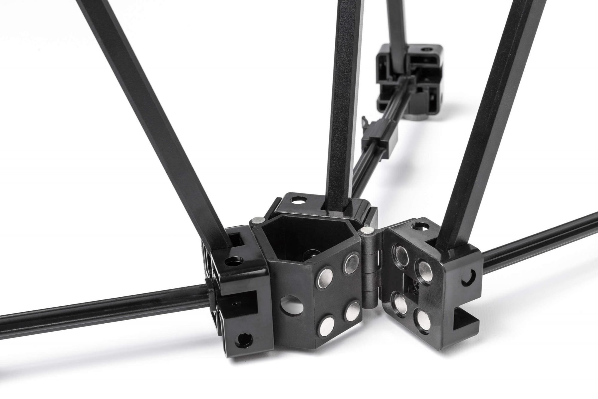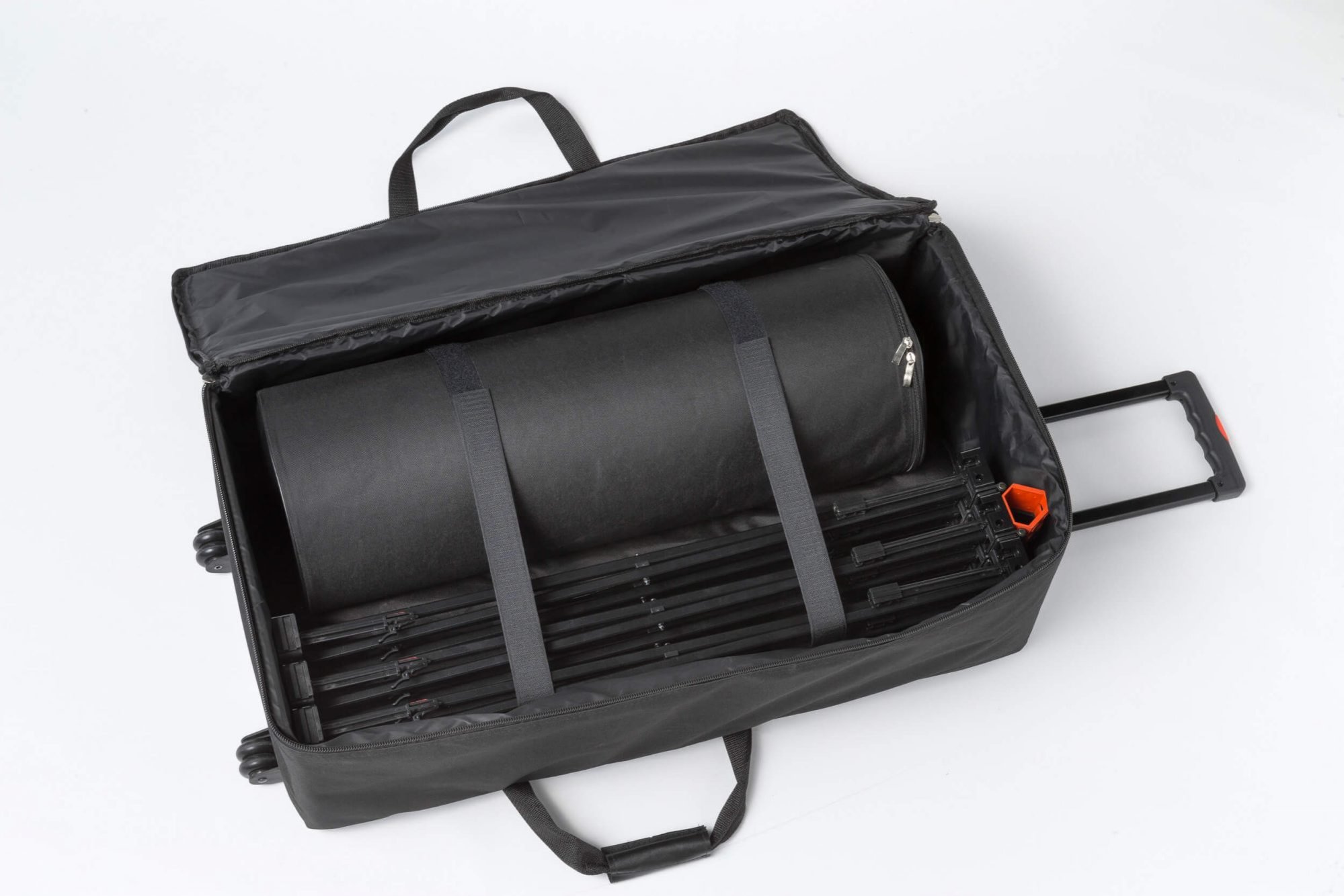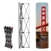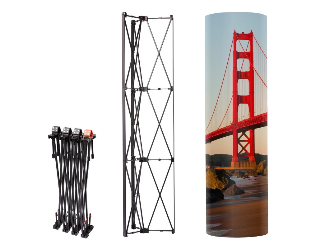 The Pop up Tower unit, with its patented hinges and magnetic locking, allows for the easy attachment of 360˚ seamless graphic panels with 12mm power magnets.