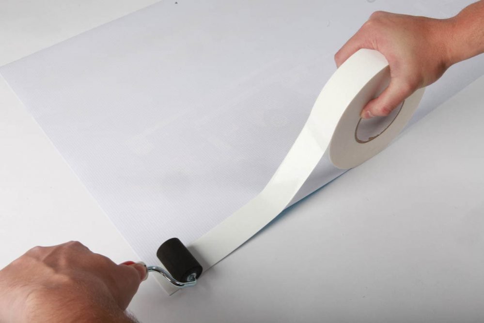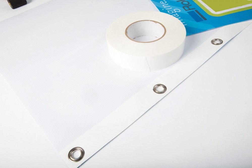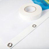 Reinforce banner edges with this one sided hemming tape without folding or sewing a hem.- Duplicates the strength of folded hem and double-sided banner tape but eliminates the hassle.